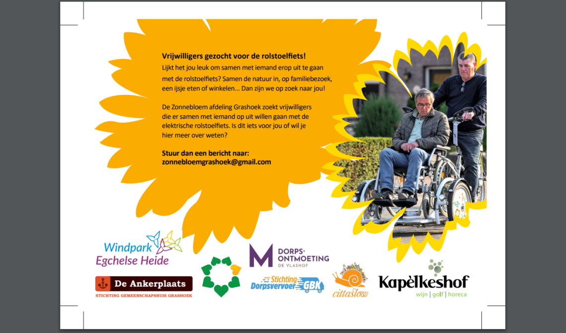 De rolstoelfiets is mede in samenwerking met sponsering van het GBK door de Zonnebloem in Grashoek tot stand gekomen. Het zou natuurlijk fijn zijn als ook mensen uit Koningslust hiervan gebruik maken.
